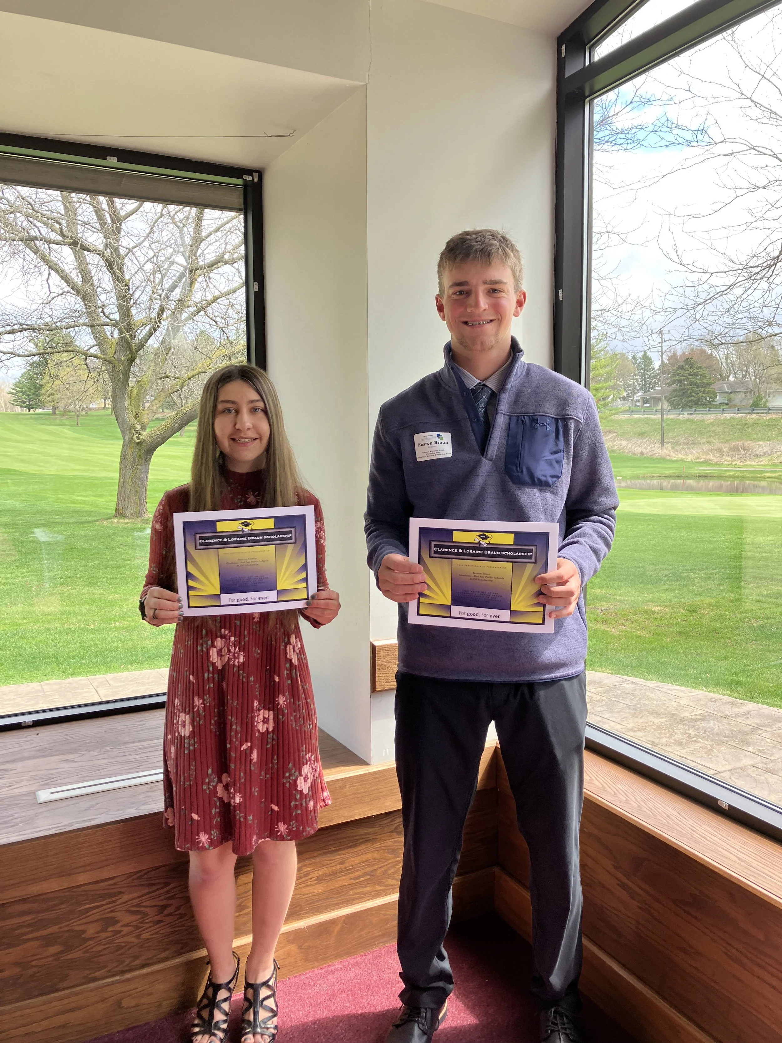 Keaton Braun and Brittany Scoviac and from Bad Axe Schools each received an award of $1,250 each from the Clarence and Loraine Braun Scholarship.